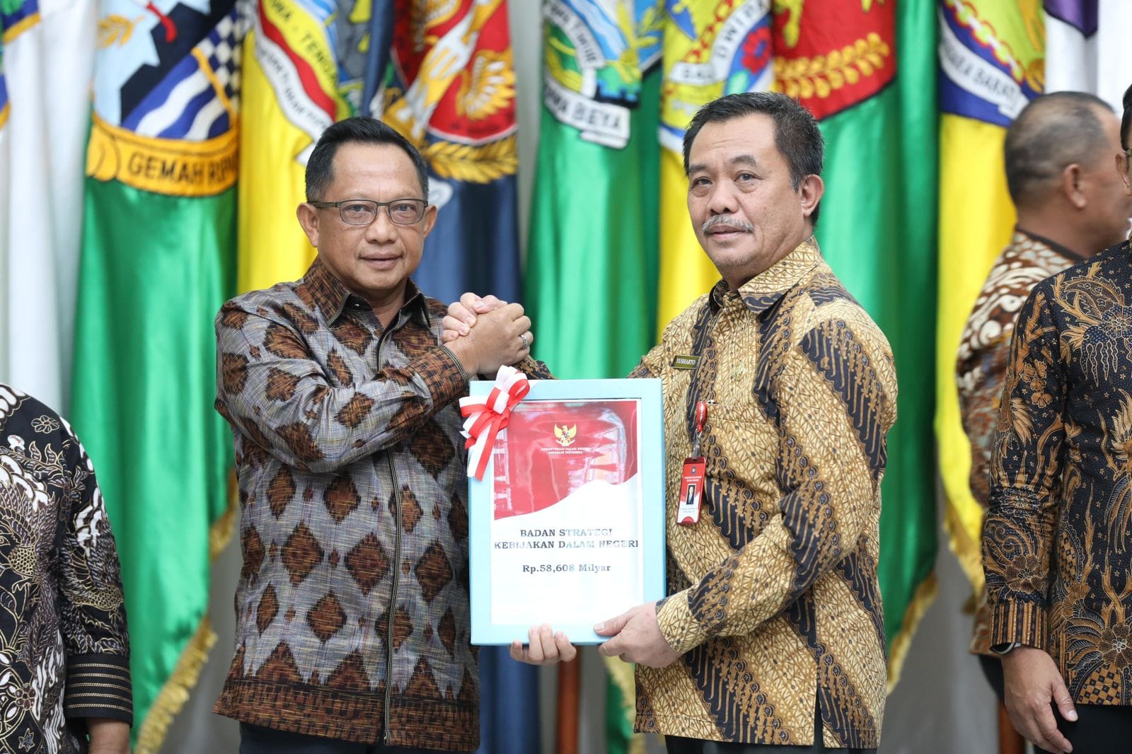 Jakarta - Kepala Badan Strategi Kebijakan Dalam Negeri (BSKDN) Kementerian Dalam Negeri (Kemendagri) Yusharto Huntoyungo menerima Daftar Isian Pelaksanaan Anggaran (DIPA) Tahun 2025 dari Menteri Dalam Negeri (Mendagri) Muhammad Tito Karnavian, di Gedung Sasana Bhakti Praja (SBP) Kantor Pusat Kemendagri pada Kamis, 12 Desember 2024. Yusharto menjelaskan, DIPA BSKDN tahun 2025 tercatat sebesar Rp58,608 miliar. Sejalan dengan itu, dia mengimbau seluruh jajaranya untuk menyusun program yang efektif