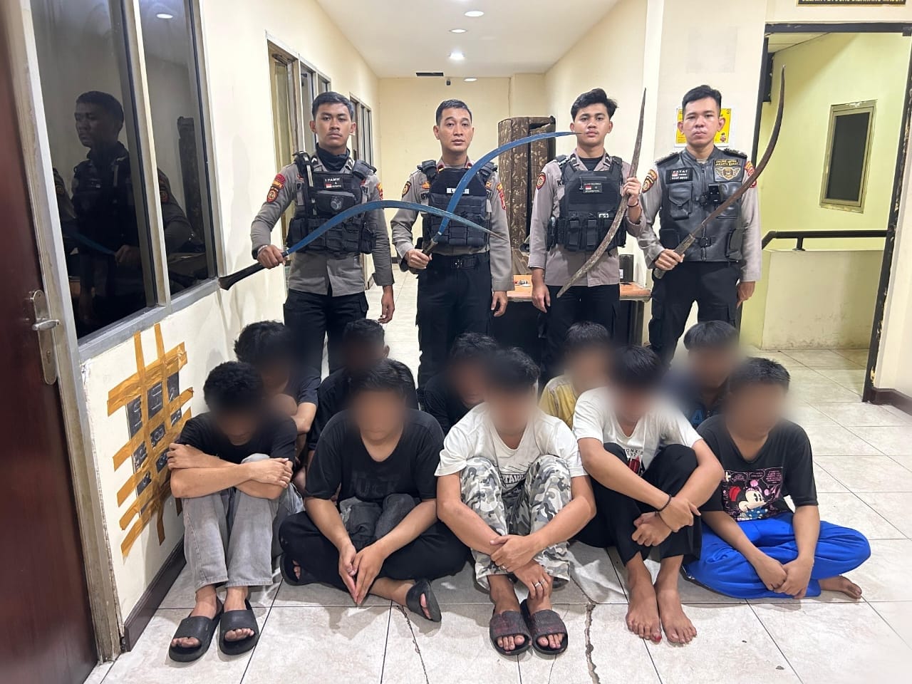 Jakarta Barat - Tim Patroli Perintis Presisi (TP3) Polres Metro Jakarta Barat berhasil mengamankan 10 remaja yang terlibat dalam aksi tawuran di Jalan Semeru, Grogol Petamburan, Jakarta Barat, pada Minggu (9/2/2025) sekitar pukul 04.30 WIB. Selain itu, petugas juga menyita 4 buah senjata tajam jenis celurit yang digunakan dalam aksi tersebut.Kasat Samapta Polres Metro Jakarta Barat, AKBP M. Hari Agung Julianto, menjelaskan bahwa kejadian bermula saat Tim 1 TP3 sedang melaksanakan patroli