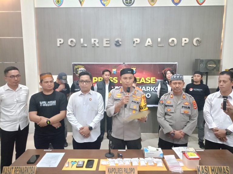Makassar - Penghujung masa jabatannya, Kapolres Palopo AKBP Safi’i Nafsikin berhasil mengungkap jaringan peredaran narkotika jenis sabu di wilayah hukum Polres Palopo.Dalam konferensi pers yang digelar pada Senin 17 Maret 2025, Kapolres Palopo AKBP Safi’i Nafsikin, didampingi Kasat Narkoba Iptu Majid dan Kasi Humas Polres Palopo AKP Supriadi, mengumumkan keberhasilan Satresnarkoba Polres Palopo dalam menangkap seorang pengedar narkotika jenis sabu dengan barang bukti seberat