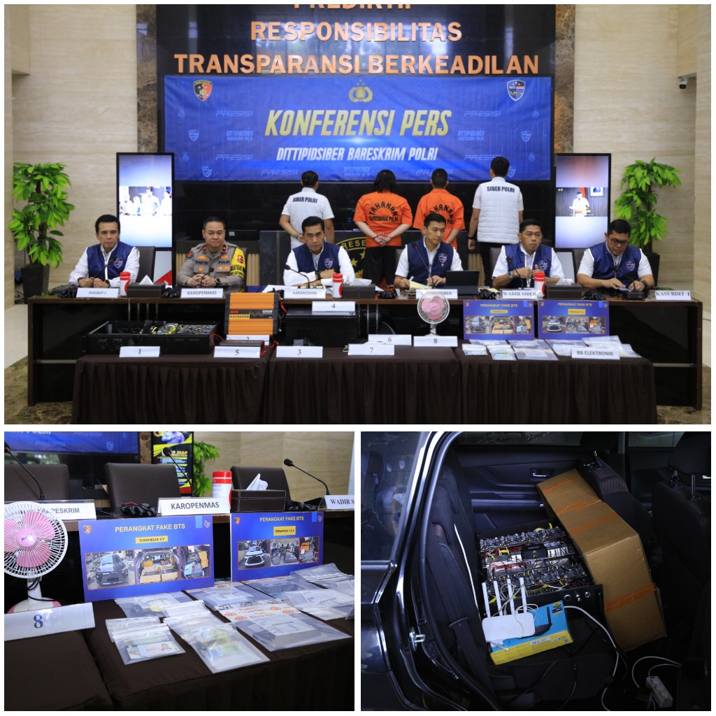 Jakarta - Direktorat Tindak Pidana Siber Bareskrim Polri mengungkap sindikat kejahatan siber internasional yang memanfaatkan teknologi fake BTS untuk menyebarkan SMS phishing secara ilegal. Dua warga negara asing asal Cina ditangkap dalam operasi yang digelar di kawasan SCBD, Jakarta Selatan.Pengungkapan ini bermula dari laporan salah satu bank swasta yang menerima aduan dari 259 nasabah terkait SMS mencurigakan. Delapan korban yang mengklik tautan phishing dalam SMS tersebut mengalami kerugian