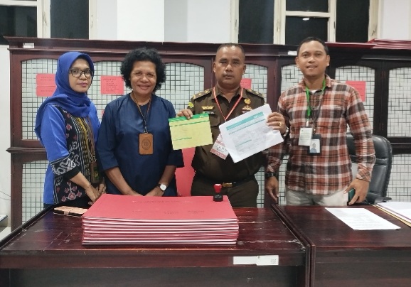 Seram Bagian Barat - Kamis, 23 Januari 2024 Bertempat di Pengadilan Tipikor Pada Pengadilan Negeri Ambon, Kasi Pidsus Kejari SBB Asmin Hamja, S.H., M.H selaku Jaksa Penuntut Umum (JPU) didampingi oleh Kasi Intel Kejari SBB, melakukan serah terima uang sitaan sebagai uang pengganti kerugian negara sejumlah Rp. 250.000.000,00 (dua ratus lima puluh juta rupiah) an. Terpidana Stenly Pirsouw, SE selaku pemilik perusahaan PT. Kairos Anugerah Marina dalam perkara tindak pidana korupsi pengadaan
