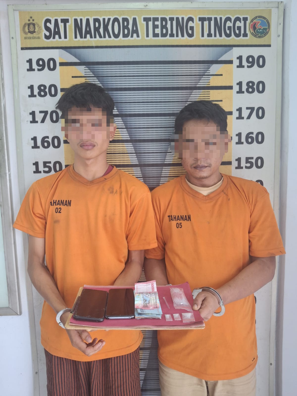 Tebing Tinggi - Personel Sat Resnarkoba Polres Tebing Tinggi berhasil mengungkap kasus tindak pidana narkotika golongan I jenis sabu. Dua orang pelaku berhasil dibekuk dari dalam sebuah rumah di Jalan Taman Bahagia, Gang Kemuning Kota Tebing Tinggi pada Rabu siang (22/1/2025).Dua pria yang berhasil dibekuk adalah MD (34) dan MN (18), keduanya merupakan warga setempat. Dari tangan para pelaku, petugas menyita barang bukti berupa tiga bungkus plastik klip transparan berisi sabu dengan berat kotor