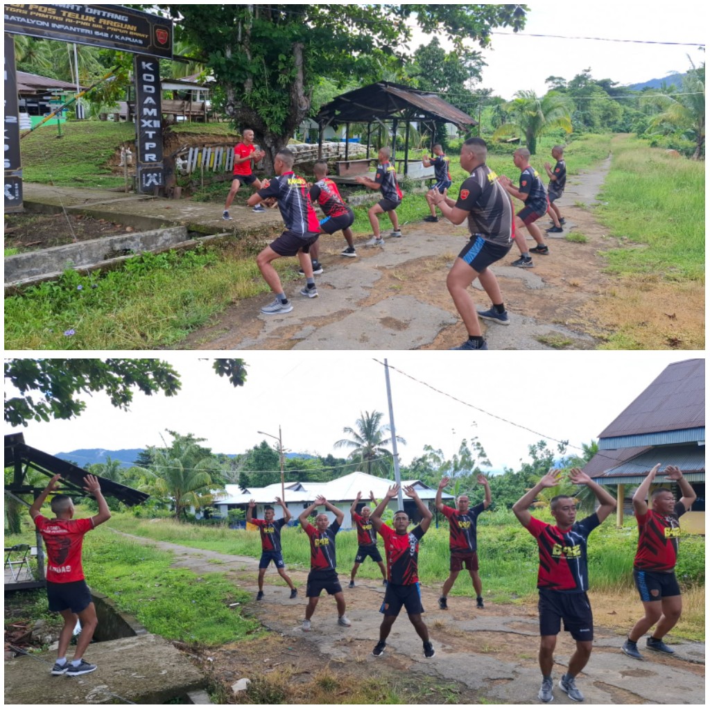 Jaga Kesehatan Anggota Dibulan Puasa, Satgas Yonif 642/Kps Laksanakan Olahraga