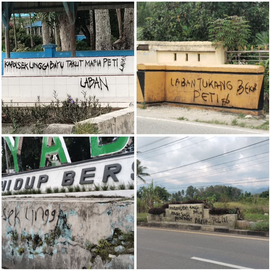 Aksi Protes PETI di Madina, Kota Panyabungan di Penuhi Coretan Kritik Aparat Ada Nama LABAN