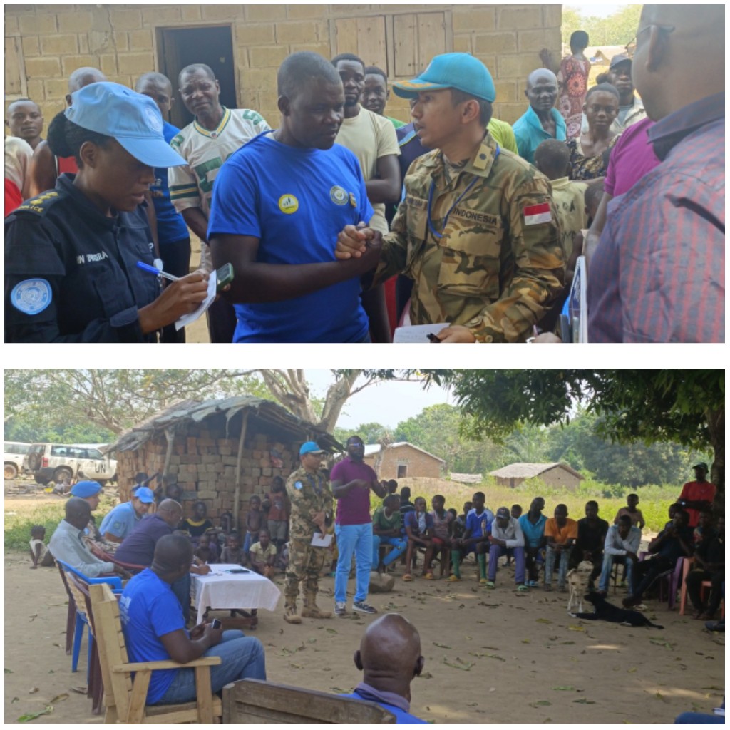 Afrika Tengah - Tiba di TS - 204 Mayor Cba Yonathan Raja Mulia Tambunan beserta tim langsung memimpin jalannya Short Range Patrol (SRP) ke desa Boronga yang berjarak kurang lebih 5 km dari Team Site – 204 Mobaye, (20/12/2024).Patroli disambut baik oleh penduduk setempat dan langsung melaksanakan interaksi satu sama lain, guna mempererat hubungan yang baik antara penduduk lokal dengan para UNMO, UNPOL dan UN Staff MINUSCA.Pada kesempatan yang sama, Mayor Nathan memperkenalkan diri