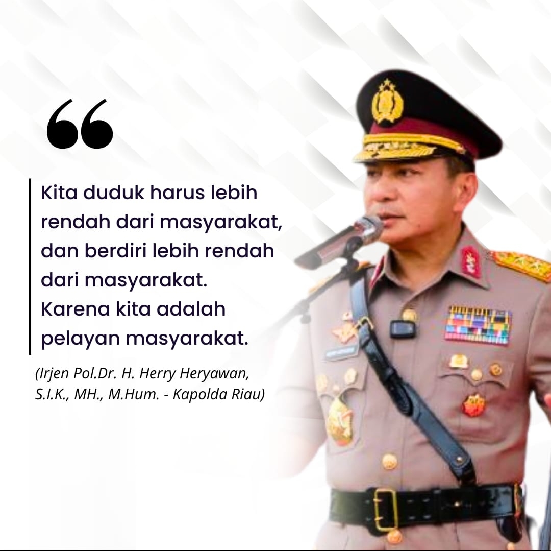 Pekanbaru, Riau - Polda Riau harus ambil bagian dalam menyukseskan semua upaya pemerintah dalam mewujudkan masyarakat Indonesia yang adil dan beradab, sebagaimana tertuang dalam Asta Cita Pemerintahan Presiden Prabowo Subianto.Begitu disampaikan Kapolda Riau Irjen Herry Heryawan saat menyampaikan poin pertama Commander Wish Kapolda Riau kepada jajaran pejabat utama Polda Riau, seluruh Kapolres dan perwira menengah di Polda Riau, Rabu (19/3/2025).Poin kedua, lanjut Irjen Herry, anggota Polda