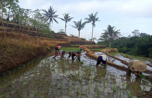 Fokus Penambahan Luas Tanam, Babinsa Desa Sumber Urip Konsisten Dampingi Tanam Padi