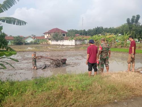 Percepat Masa Tanam, Babinsa Dampingi Petani Bantu Bajak Sawah