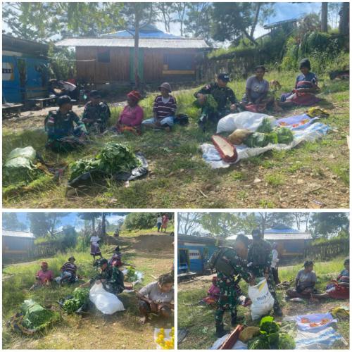Berkah Menjelang Ramadhan, Satgas Yonif 641/Bru Borong Hasil Tani Mama-Mama Distrik Eragayam