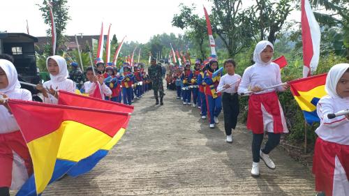 Umbul - Umbul Sepanjang Desa Kalinanas Hiasi Kemeriahan Wacana Pembukaan TMMD Reguler Ke-123