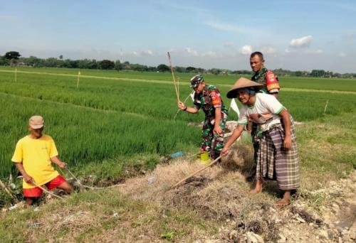 Kejar Progres Luas Tambah Tanam, Babinsa Desa Gandekan Bantu Petani Tanam Padi