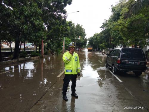 Hujan Deras, Satlantas Polres Jakbar Lakukan Pengalihan Arus di Beberapa Ruas Jalan