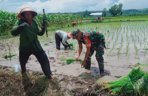Koptu Wahyu Anugerah Bersama Warga Desa Gununggede, Tingkatkan Hanpangan dengan Menanam Padi