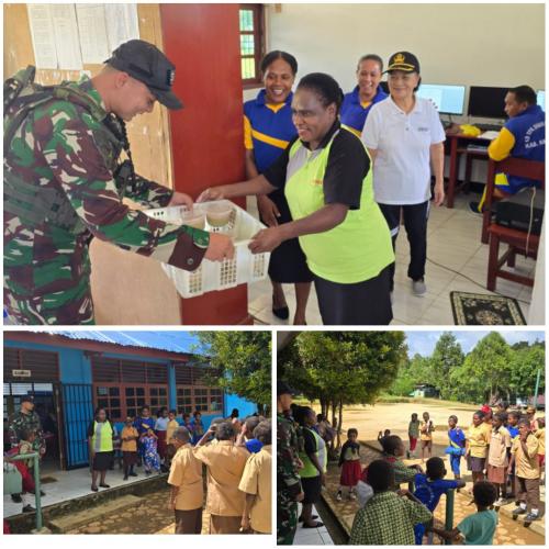 Tebar Kasih Sayang Ditanah Papua, Saat Satgas Yonif 641/Bru Bagikan Snack Secara Gratis