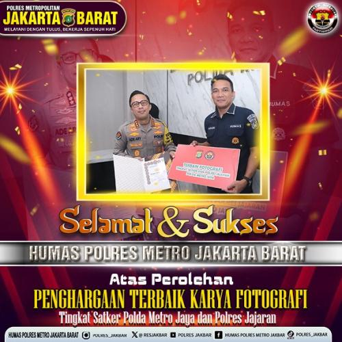 Humas Polres Metro Jakarta Barat Raih Penghargaan Terbaik dalam Fotografi Tingkat Polda Metro Jaya