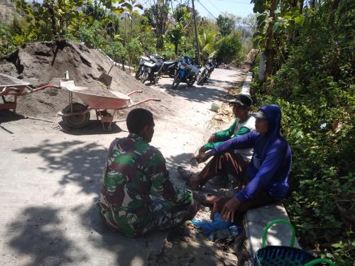Babinsa Klego Komsos di Sela Waktu Rabat Beton
