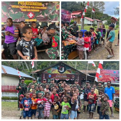 Tingkatkan Gizi Anak-Anak Papua, Satgas 641/Bru Bagikan Bubur Kacang Hijau dan Telur Rebus Secara Gratis