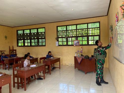 Satgas Pamtas RI-RDTL Sektor Barat Yonarhanud 15/DBY Berikan Pendidikan di SMP Satu Atap Desa Taloi