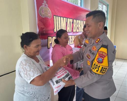 Kapolres Tebing Tinggi Bagikan Bantuan Beras kepada Warga Kurang Mampu