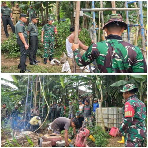 Prajurit TNI Satgas TMMD Reg ke-123 Kodim 0724/Boyolali Mengerjakan Pembuatan Sumur Bor Program Kasad