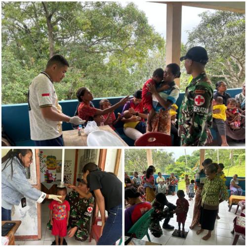 Satgas Pamtas RI-RDTL Sektor Barat Bersama Tenaga Kesehatan Gelar Posyandu di Dusun Nelu