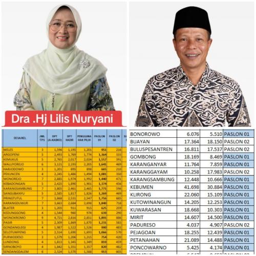 Lilis - Zaeni Kuasai Pilkada Kebumen 2024 di Beberapa Kecamatan