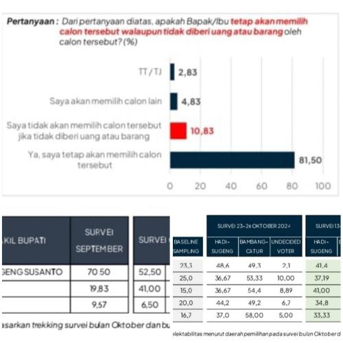 Survei Indopol Pilkada Grobogan, Pasangan Bambang-Catur 59,5%, Hadi-Sugeng 37,5%