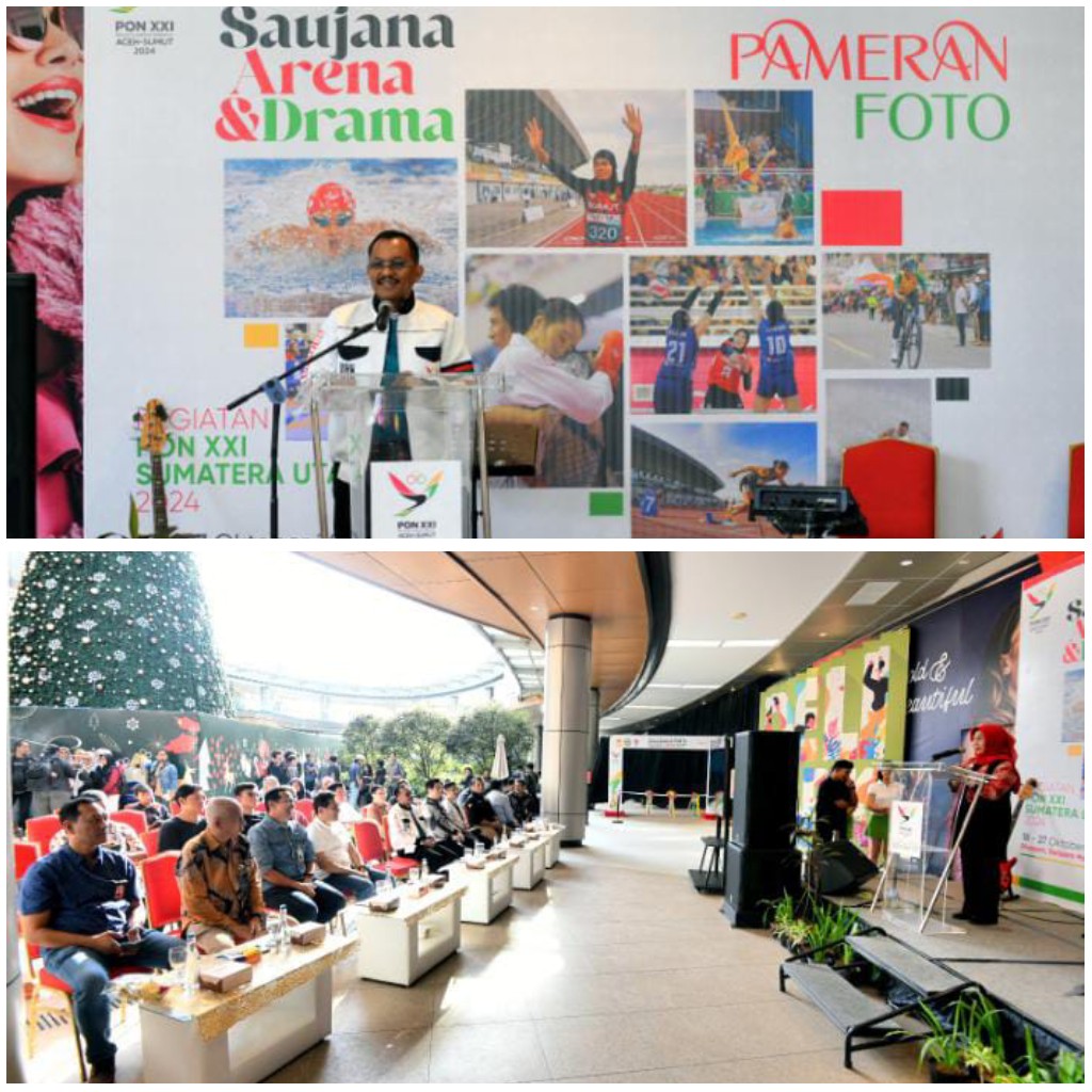Medan - Panitia Besar (PB) Pekan Olahraga Nasional (PON) XXI Wilayah Sumatera Utara (Sumut) menggelar pameran foto Pekan Olahraga Nasional (PON) XXI bertema ‘Saujana Arena dan Drama’. Pameran foto tersebut diharapkan dapat mengingatkan kembali masyarakat tentang kesuksesan PON XXI di Sumut.