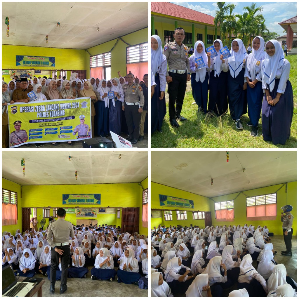 Kuansing - Dalam upaya meningkatkan kesadaran keselamatan berkendara di kalangan pelajar, Sat Lantas Polres Kuantan Singingi (Kuansing) melaksanakan kegiatan Police Goes to School, bertempat di SMPN 1 Benai pada hari Senin (21/10/2024). Kegiatan ini merupakan bagian dari Operasi Zebra Lancang Kuning 2024 yang bertujuan untuk mengedukasi siswa tentang pentingnya tertib berlalu lintas di jalan raya.