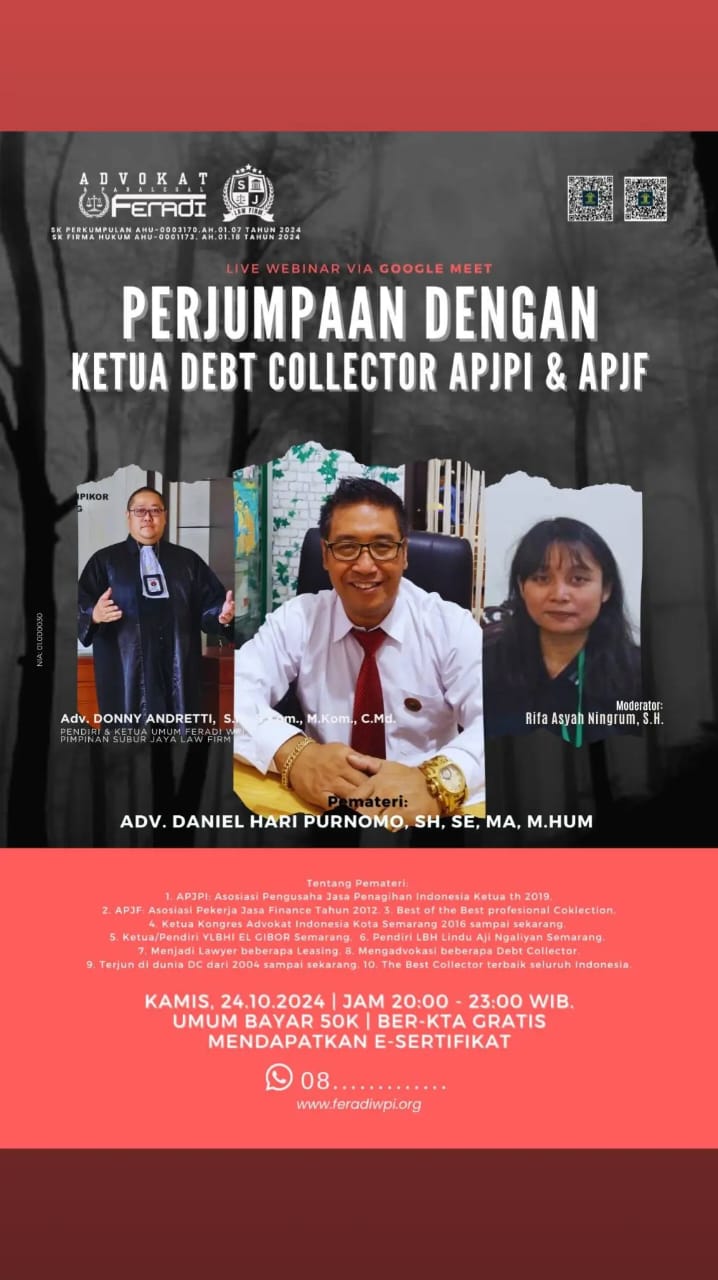 SUBUR JAYA LAWFIRM FERADI WPI menghadirkan Pemateri istimewa Advokat Daniel Hari Purnomo, SH, SE, MA, M.Hum Rabu, 23/10/2024 | 21:01