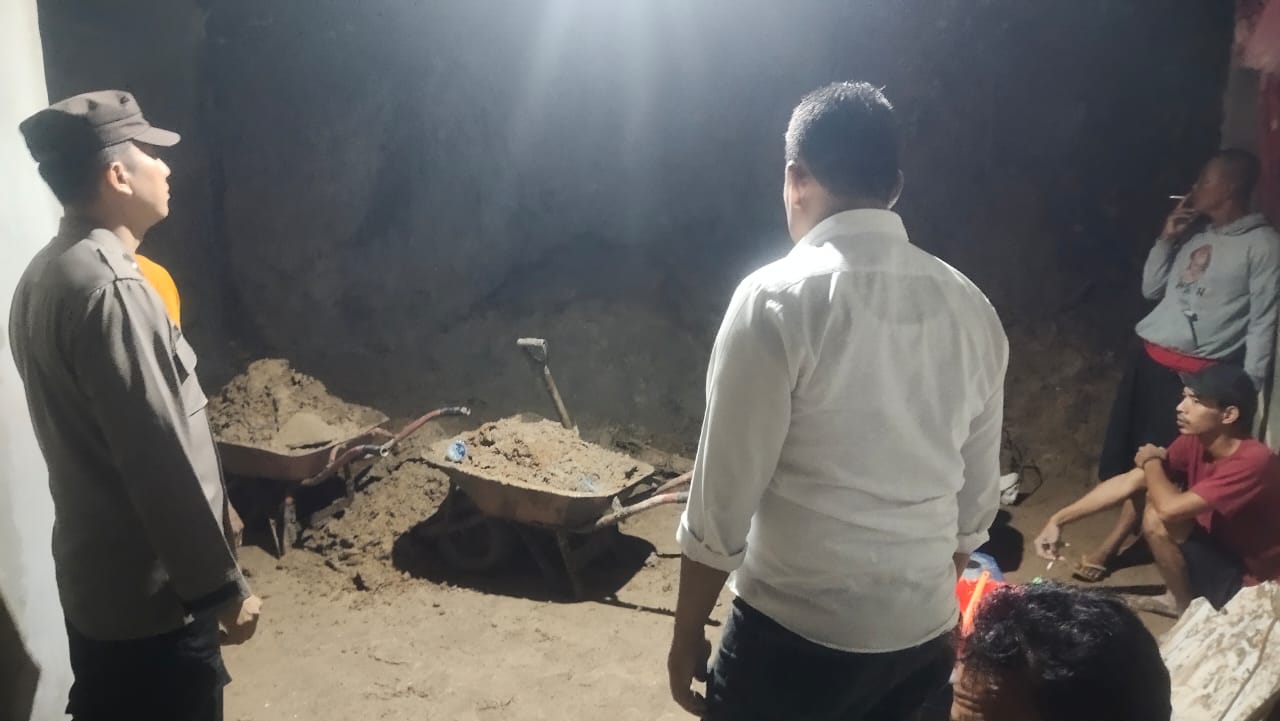 Tebing Tinggi - Personel Polsek Sipispis Polres Tebing Tinggi bersama Kanit Reskrim Polsek Sipispis Ipda Nipmos J. Silalahi melakukan pengecekan tempat kejadian perkara (TKP) tanah longsor di Dusun IV Desa Buluh Duri Kecamatan Sipispis, Kabupaten Serdang Bedagai yang mengakibatkan kerusakan pada satu rumah permanen milik warga, Sabtu sore (02/11/2024) sekitar pukul 18.30 WIB.