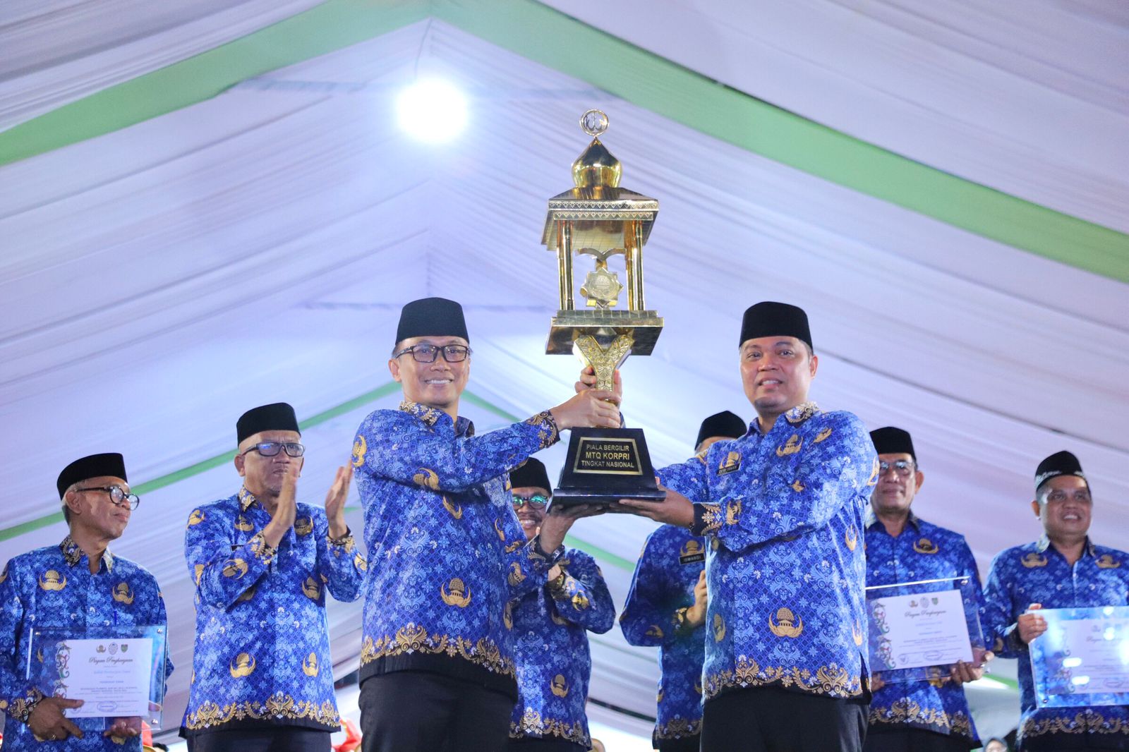 Prof. Zudan Arif Fakrulloh, Ketua Umum Korpri, secara resmi menutup acara tersebut dengan menabuh *Katambung*, alat musik tradisional khas suku Dayak. Dalam pidatonya, ia menyampaikan apresiasi tinggi kepada seluruh peserta dan pihak yang terlibat dalam suksesnya penyelenggaraan MTQ ini.