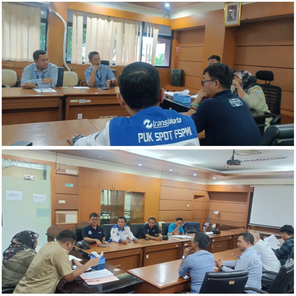 Jakarta - Perwakilan dari Federasi Serikat Pekerja Metal Indonesia (FSPMI) PT. Transportasi Jakarta melakukan sidang mediasi kedua yang dimediatori langsung oleh Hubungan Industrial Disnakertrans DKI Jakarta di ruang klarifikasi lantai 2 Komplek Perkantoran Dinas Teknis Pemprov DKI Jakarta Jatibaru Jl. Taman Jati Baru No.1, Cideng, Gambir, Jakarta Pusat.