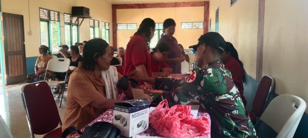 Posbindu ini dihadiri oleh Dinas kesehatan dari Puskesmas, Kader kesehatan, kepala desa, warga setempat yang sudah lanjut usia, dan Satgas Pamtas.