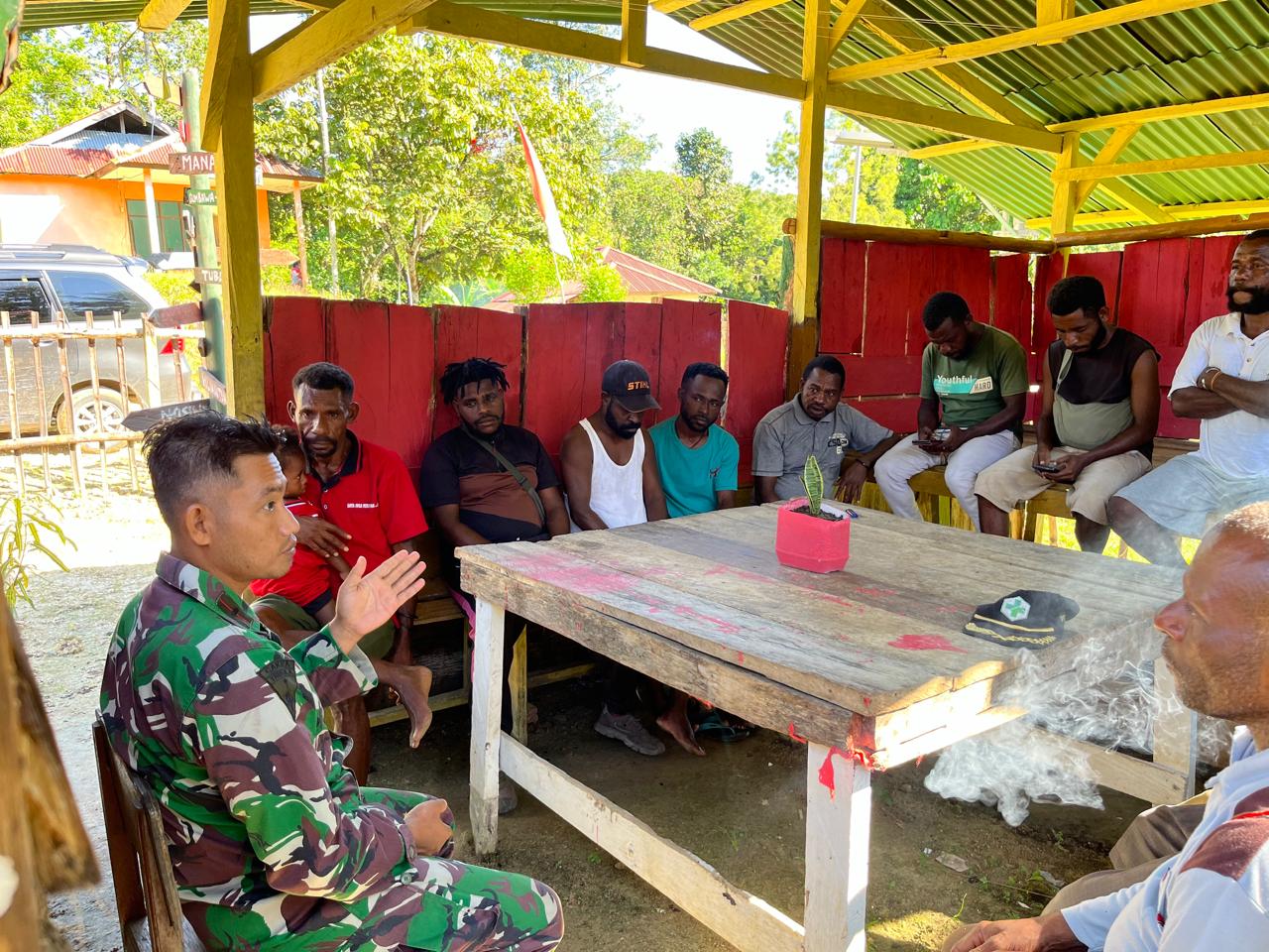 Maybrat - Satuan Tugas Batalyon Infanteri (Satgas Yonif) Para Raider 501/Bajra Yudha Kostrad, sebagai salah satu Satuan Jajaran Komando Operasi HABEMA di Papua, tengah melaksanakan tugas Operasi Pengamanan Perbatasan Mobil RI-PNG, khususnya di wilayah Kabupaten Maybrat, Provinsi Papua Barat Daya. Pada hari Senin, 2 Desember 2024, Satgas Yonif 501 Kostrad, khususnya Pos Faankahrio pimpinan Lettu Inf Rahman, bersama para Tokoh Masyarakat (Tomas) Distrik Aifat Timur Tengah, khususnya dari Kampung Pitor, melaksanakan Komunikasi Sosial (Komsos) ketika kegiatan pengamanan wilayah juga berlangsung.