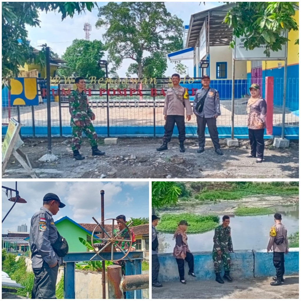 Surakarta - Hari Senin tanggal 09 Desember 2024, Babinsa Joyotakan Koramil 03 Serengan Kodim 0735 Surakarta Serka. A. Rumbawa dan Sertu Harnawan bersenirgi bersama Bhabinkamtibmas Aipda Fajar A melaksankan pengecekan Debit Air dan Kondisi Pompa di beberapa pintu Air yang berada di wilayah binaan Kel. Joyotakan.