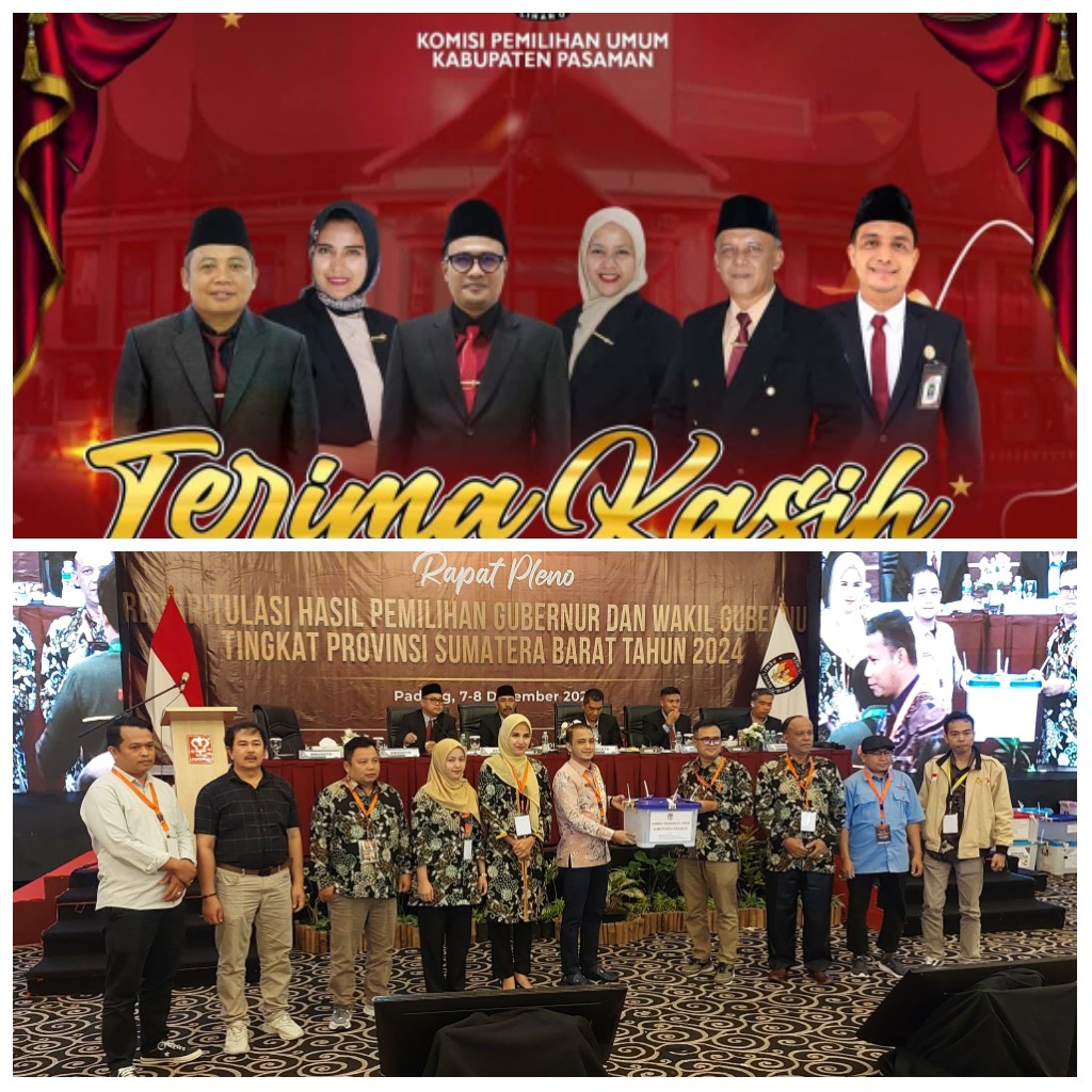 "KPU Pasaman menyampaikan terima kasih dan apresiasi setinggi-tingginya kepada semua pihak, terutama aparat keamanan yang bertugas mengamankan TPS-TPS, rekapitulasi tingkat kecamatan maupun kabupaten. Bekerja professional dan luar biasa," ujar Taufiq, pada Senin (9/12/2024).