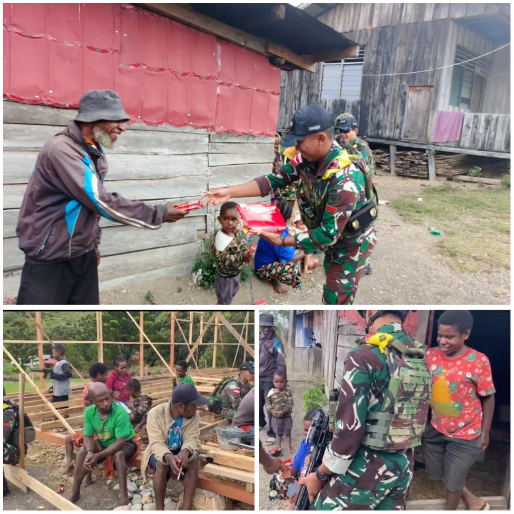 Membramo Tengah - Bukti nyata TNI selalu hadir ditengah-tengah masyarakat, Satgas Yonif 641/Bru melaksanakan komsos dan berbagi snack dalam rangka menjaga silaturahmi dan hubungan baik dengan warga di Distrik Kelila, Kabupaten Membramo Tengah, Provinsi Papua Pegunungan, (11/12/2024).