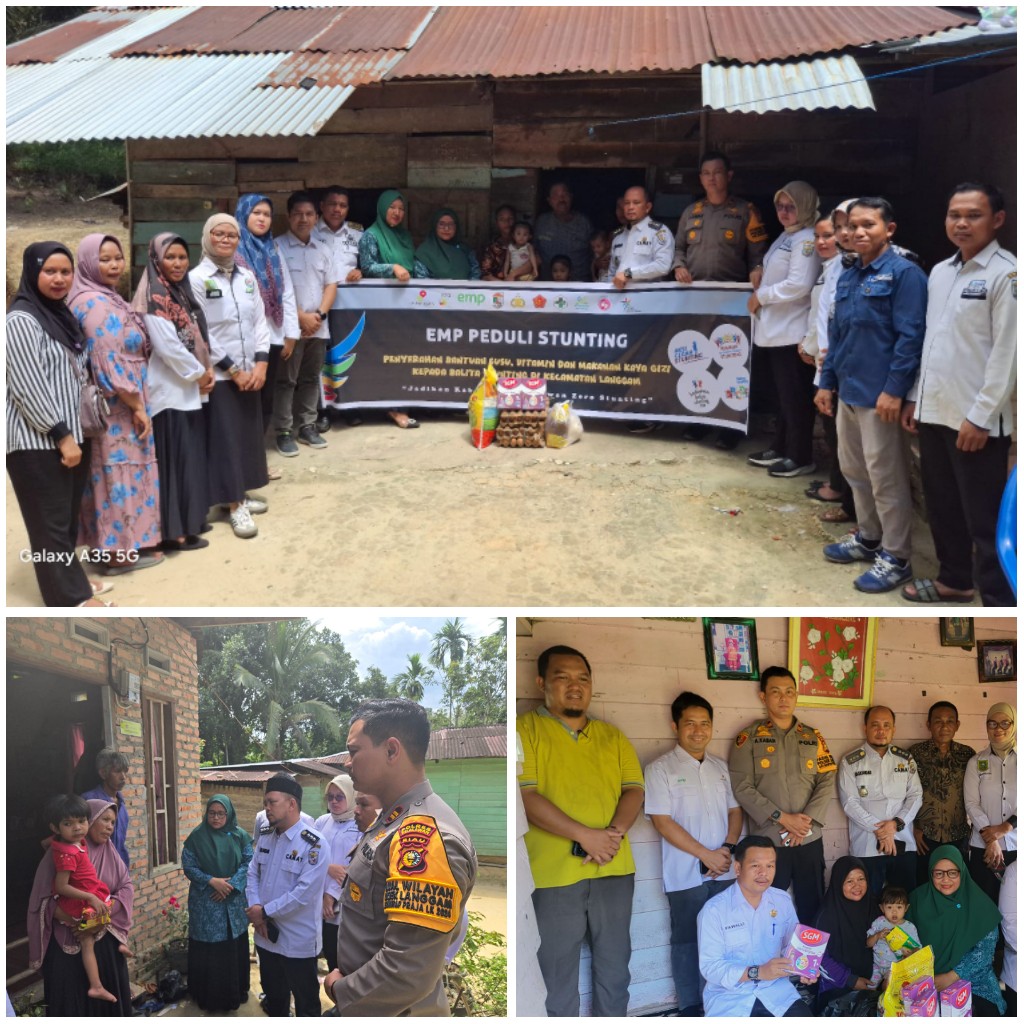 "Kami bersama Forum komunikasi kecamatan dan perusahaan membagikan bantuan program pencegahan stunting berupa makan pokok Vitamin dan Susu,"kata Camat Langgam Maskandar, S.,Pt.