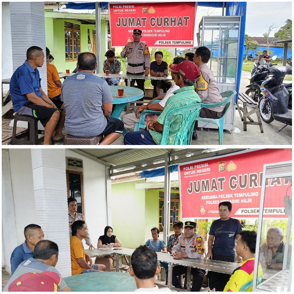 Tempuling - Dalam rangka mendekatkan diri dengan masyarakat dan memperkuat hubungan antara Polri dan warga, Kapolsek Tempuling, AKP Osben Samosir S.H , bersama personil Polsek Tempuling, menggelar kegiatan Jumat Curhat di Kelurahan Sungai Salak, Kabupaten Indragiri Hilir. Kegiatan ini bertujuan untuk mendengarkan keluh kesah masyarakat, memberikan solusi terhadap masalah yang ada, serta memberikan edukasi kepada warga mengenai situasi pasca Pemilihan Kepala Daerah (Pilkada) 2024.