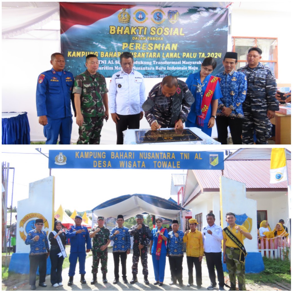 Palu - Pangkalan TNI Angkatan Laut (Lanal) Palu Kolonel Laut (P) Martinus Sir, secara resmi melaksanakan peresmian Kampung Bahari Nusantara (KBN) di Desa Towale, Kabupaten Donggala, Sulawesi Tengah, pada Selasa (17/12/2024).