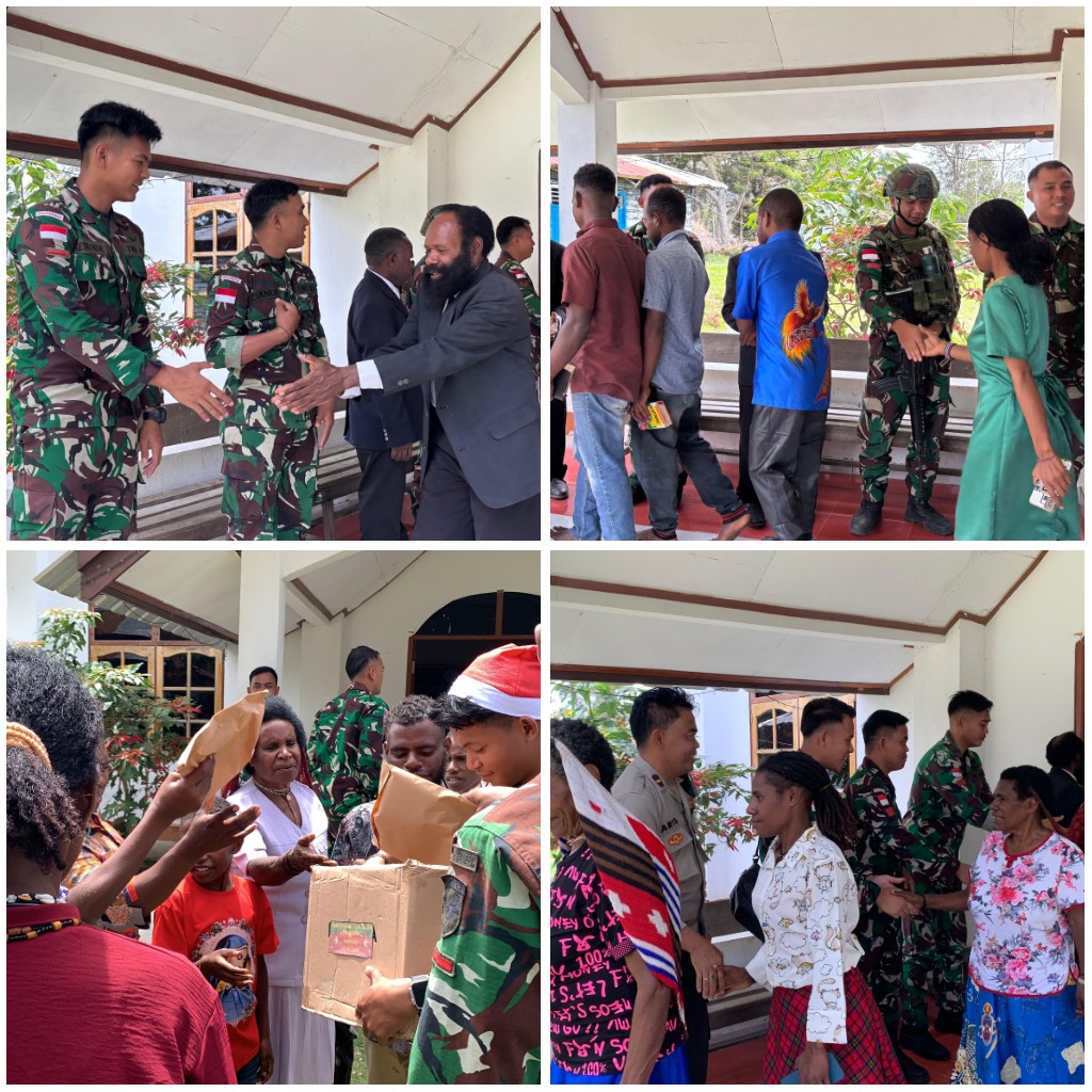 Satgas Yonif 641/Bru ibadah bersama dengan masyarakat Kampung Bolakme di Gereja GKI Distrik Bolakme, Kabupaten Jayawijaya, Provinsi Papua Pegunungan, (05/01/2025).