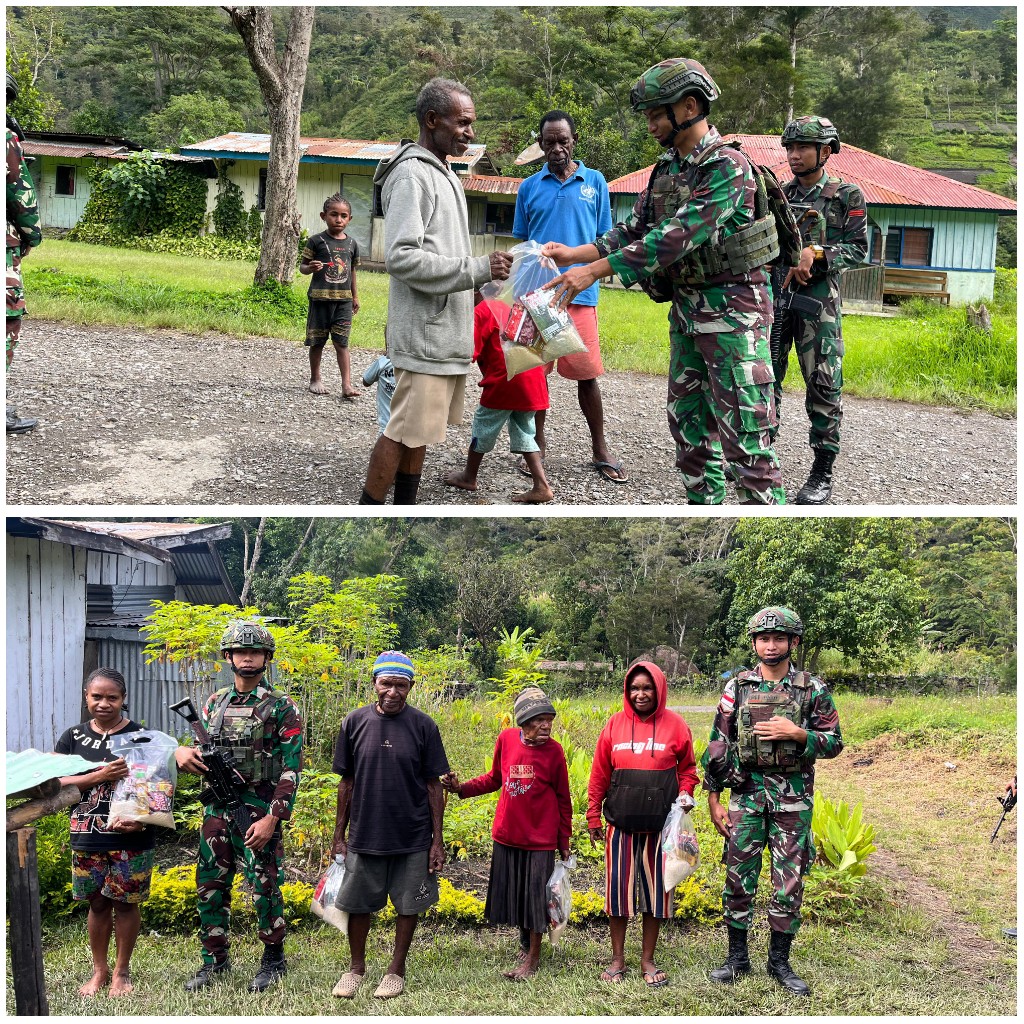 Yahukimo - Guna meningkatkan dan mewujudkan kepedulian terhadap masyarakat terutama yang lanjut usia di Papua, Pos Kurima Satgas Pamtas RI-PNG Yonif 641/Bru melaksanakan Anjangsana dan membagikan sembako guna membantu ekonomi para lansia yang ada di Kampung Polimo, Distrik Kurima, Kabupaten Yahukimo, Provinsi Papua Pegunungan (07/01/2025).