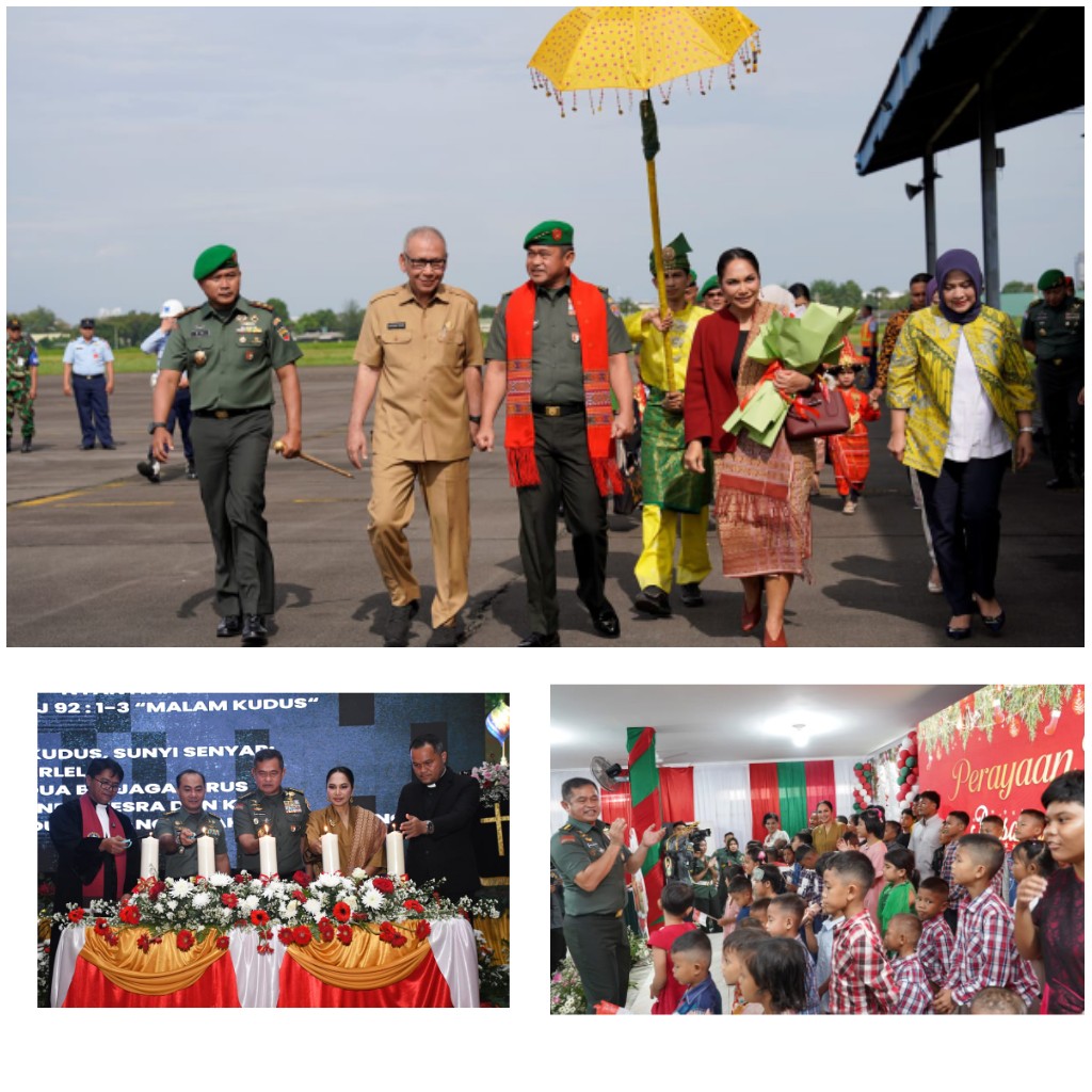 Medan - Kepala Staf TNI Angkatan Darat (Kasad), Jenderal TNI Maruli Simanjuntak, bersama Ketua Umum Persit Kartika Chandra Kirana, Ny. Uli Simanjuntak melakukan kunjungan kerja ke Kodam I/BB di Medan untuk merayakan Natal 2024 bersama Prajurit dan PNS Kodam I/BB yang beragama Nasrani, serta meresmikan renovasi Panti Asuhan Bait Allah di Medan Sunggal pada Selasa (7/12/2025).