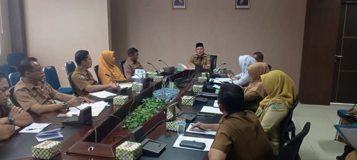 Pasaman - Rapat izin operasional PMI Ruangan rapat Bupati untuk peningkatan pelayanan penyediaan darah di Pasaman dipimpin langsung oleh Bupati Pasaman Sabar AS ,diruang kerja Bupati Senin 13 Januari 2025.