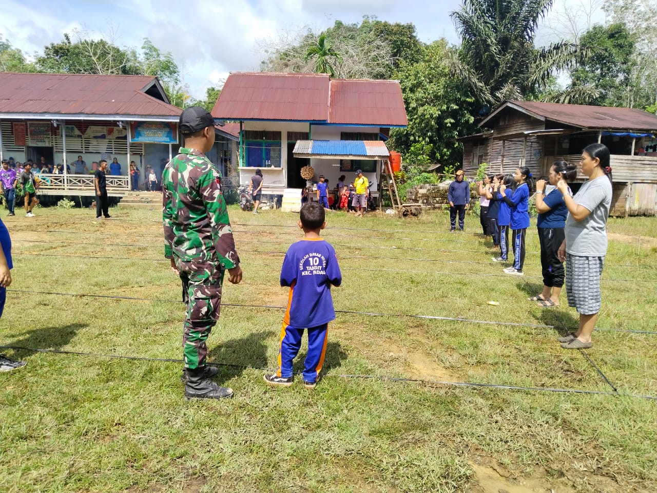 Kapuas Hulu - Dalam rangka menyemarakkan perayaan Natal dan Tahun Baru, Pos Seriang Satgas Pamtas RI-Malaysia bersama warga mengadakan perlombaan antar desa yang diselenggarakan di SDN Tangit 1 Desa Tangit 1, Kecamatan Tajum, Kabupaten Kapuas Hulu, Senin (20/1/2025).