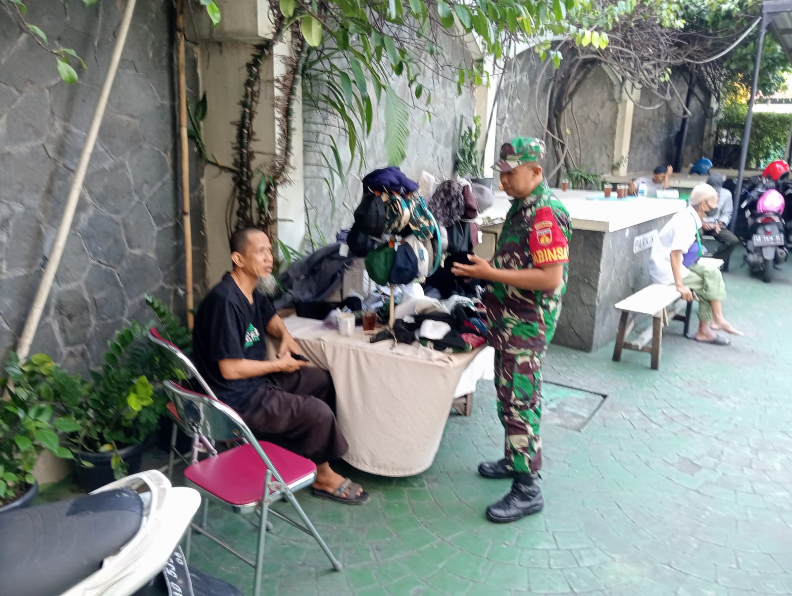 Surakarta - Dalam rangka Meningkatkan hubungan aparat teritorial dengan warga di lingkungan Masyarakat, Serka Rohmad Babinsa Kelurahan Jayengan Koramil 03/Ssrenganb Kodim 0735/Surakarta melaksanakan kegiatan Komsos dengan Bapak Yudhi yang Jualan Peci di RT 01/01 Jayengan Serengan Kota Surakarta, Senin (27/1/2025).
