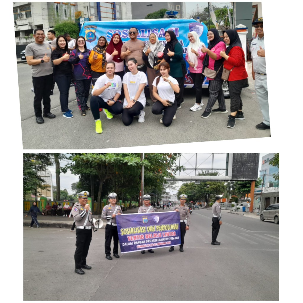 Tebing Tinggi - Dalam rangka Operasi Keselamatan Toba 2025, Satlantas Polres Tebing Tinggi menggelar kegiatan Sosialisasi Keselamatan Berkendara, Tertib Berlalu Lintas, dan Senam Sehat Bersama di depan Halaman Bank Sumut Syariah, Jalan Sutomo Kota Tebing Tinggi, pada Minggu (16/2/2025).