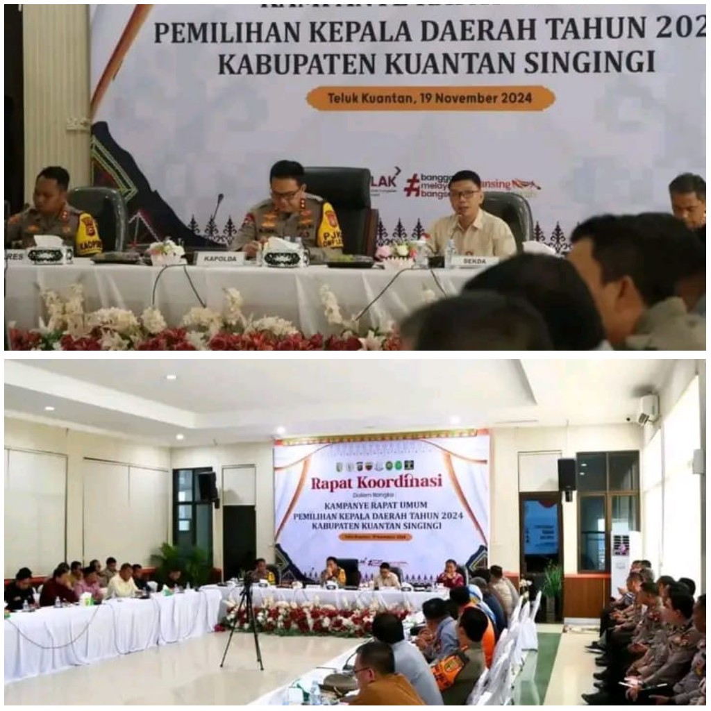 Kuansing - Kepala Kepolisian Daerah (Kapolda) Riau Irjen. Pol. Muhammad Iqbal, S.I.K., MH melakukan kunjungan kerja ke Kabupaten Kuantan Singingi (Kuansing) dan menggelar Rapat Koordinasi dalam rangka Kampanye Rapat Umum Pemilihan Kepala Daerah Kuansing.